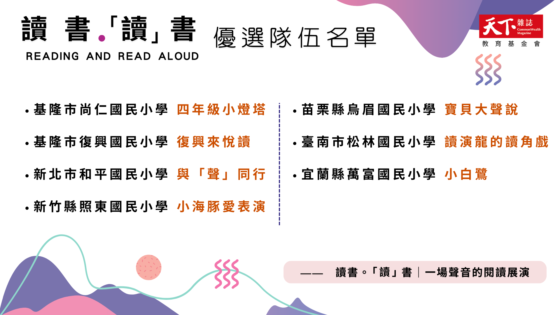 今年我們精心策劃了一場聲音的閱讀展演 —— 讀書。讀 書|Reading and Read Aloud,邀請偏鄉學童組隊,用聲音呈現他們對故事的理解和詮釋。透過一次次練習,把他們的閱讀能力,轉化為能被聽見的作品。