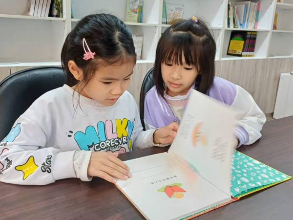 讀完繪本後,我們做了一個小小的閱讀任務。孩子們各自挑選一本喜歡的書,邀請自己的好夥伴一起共讀、一起分享。兩個人坐在一起翻著書頁,你一句、我一句地討論故事內容,有時分享自己的想法,有時提出不同的觀點。